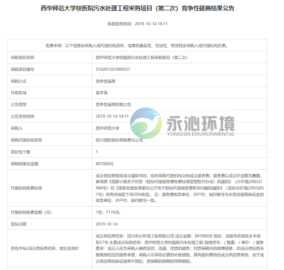 中標(biāo)西華師范大學(xué)校醫(yī)院污水處理項(xiàng)目