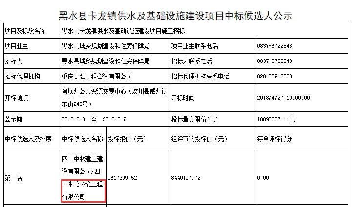 日前,我公司中標(biāo)“中標(biāo)黑水縣卡龍鎮(zhèn)供水及基礎(chǔ)設(shè)施建設(shè)項(xiàng)目”。項(xiàng)目新建供水廠一座,設(shè)計(jì)規(guī)模近期400立方/天,遠(yuǎn)期800立方/天,配套輸水管網(wǎng)7500米,配套附屬基礎(chǔ)設(shè)施。該項(xiàng)目我公司以環(huán)保專業(yè)公司的身份聯(lián)合中林建設(shè)中標(biāo),中標(biāo)金額961.73萬元。