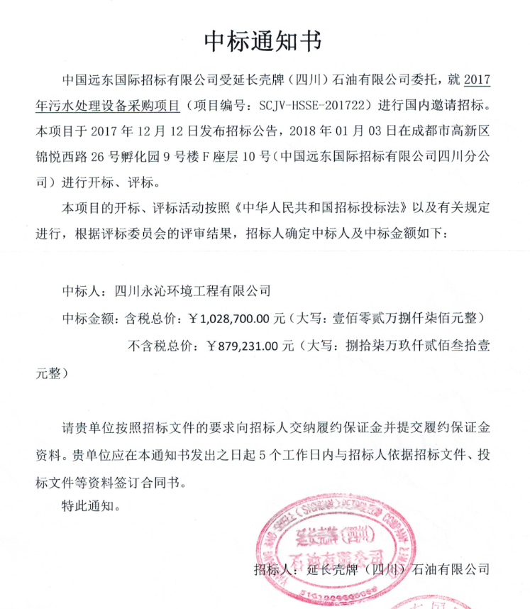 公司中標(biāo)殼牌9個(gè)加油站2017年污水處理設(shè)備采購(gòu)項(xiàng)目