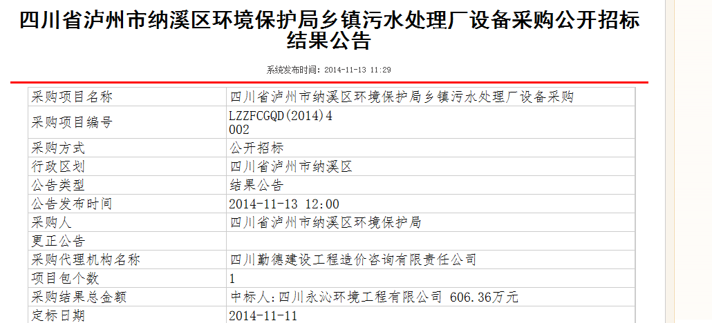 公司中標(biāo)瀘州4個(gè)鄉(xiāng)鎮(zhèn)污水處理項(xiàng)目