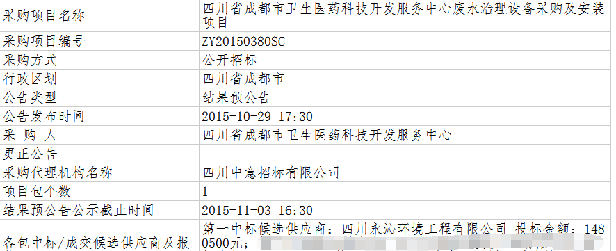 日前,公司中標(biāo)成都市衛(wèi)生醫(yī)藥科技開發(fā)服務(wù)中心廢水治理設(shè)備采購及安裝項(xiàng)目,這將是我公司在醫(yī)療廢水處理項(xiàng)目方面的又一成功案例。