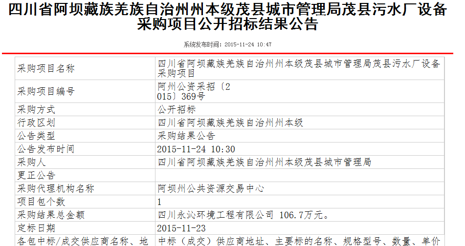 公司中標(biāo)阿壩州茂縣污水廠技改項目