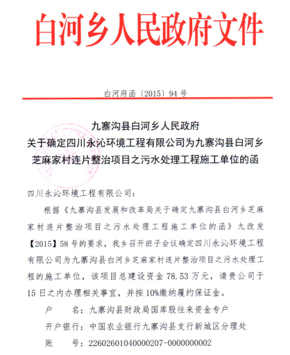 公司簽約九寨溝白河鄉(xiāng)農(nóng)村環(huán)境整治項(xiàng)目