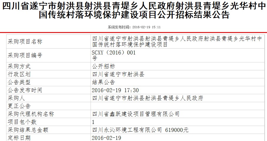 公司中標(biāo)射洪射洪縣青堤鄉(xiāng)光華村中國傳統(tǒng)村落環(huán)境保護(hù)建設(shè)項(xiàng)目