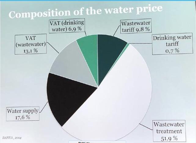 “1970年代,丹麥遇到許多水問題,包括用水太多、水污染等?!?月27日,丹麥環(huán)境署水資源特別顧問金姆·馬茲比爾格(Kim Madsbjerg),在丹麥環(huán)境與食品部五樓會議室介紹說,過去30年,丹麥加大了水環(huán)境的治理,包括大幅提高水價,推動水處理技術(shù)的創(chuàng)新進步等?!八畠r快速上升,是因為包含了水價、增值稅、污水處理成本等,其中污水處理成本在水價構(gòu)成中的占比高達51.9%?!彼f。